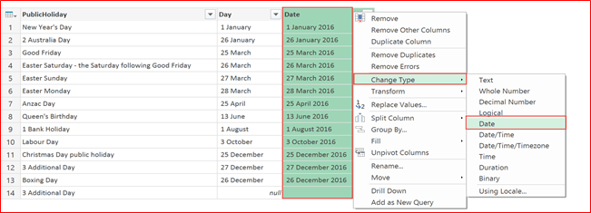 To illustrate this, I am using Power Query to extract NSW Public holidays from industrial relations website (Screen Capture 1)